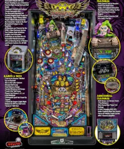 Aerosmith pinball machine reflects the high-energy and excitement that accompanies the experience of a live Aerosmith concert. Players will rock to nine famous Aerosmith hits in the concert arena playfield and embark on an exhilarating pinball experience. Players score points and finish game objectives to raise the audience’s levels of energy, thrill and enjoyment. Higher scores amplify the experience–the higher the energy level, the bigger and louder the show–resulting in an Aerosmith pinball experience that cannot be matched.