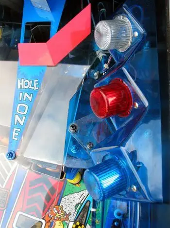 No Good Gofers also has a “slam-ramp” feature which if used correctly, will award the player a “hole-in-one” shot. Performing this is tricky, as the ball must travel off the ramp, into the air, and into a very small hole located on the game’s upper playfield. The “hole-in-one” shot is often called one of the greatest shots in pinball history.