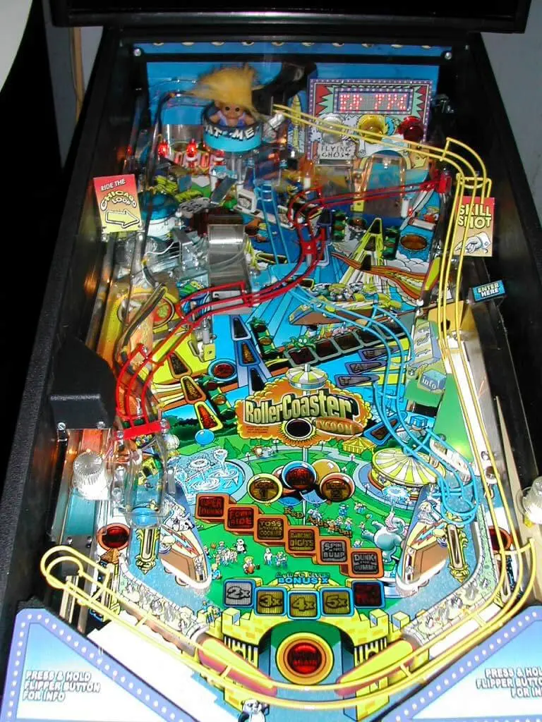 The Roller Coaster Tycoon pinball machine follows in the illustrious footsteps of these vintage pinball machines. Theme games from amusement parks have consistently performed remarkably well in coin-op. Among the most profitable pinball machines ever made were Cyclone and Comet, which continued to generate high profits for many years after they were first manufactured. The Sterns ROLLERCOASTER TYCOON® pinball machine promises to be a significant earner for a very long time and elevates the idea of an amusement park to a whole new and thrilling level.