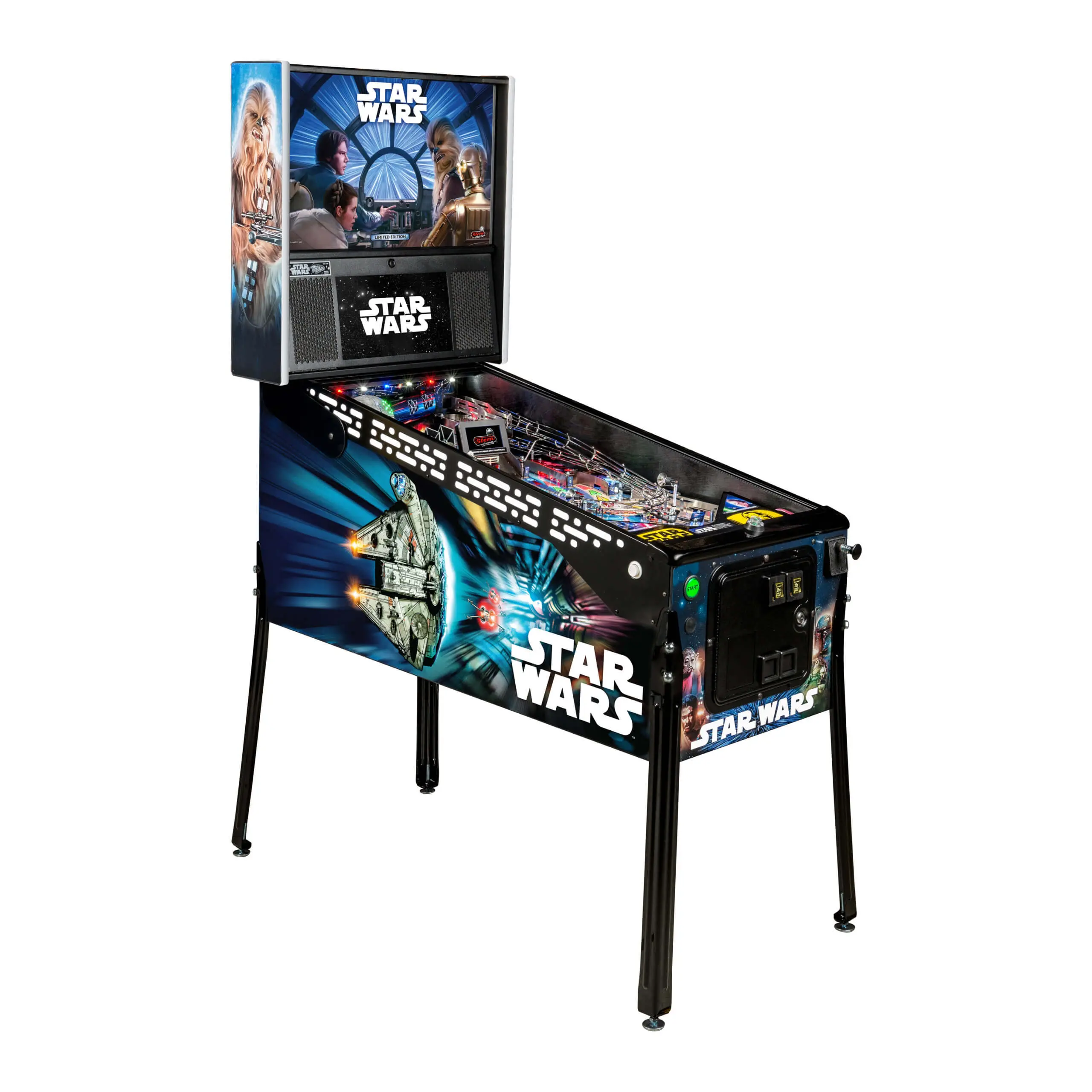 Designed by Steve Ritchie, the game focuses on the original Star Wars trilogy. The game will immerse players in the dynamic and challenging Star Wars pinball environment as they battle to restore justice to the Galaxy. Stern’s Star Wars Limited Edition machines are packed with features that provide an irresistible game experience. The game includes select speech and footage from the original Star Wars trilogy; color-changing LED-lighted inserts; a sculpted LED-lit Millennium Falcon; and a sculpted TIE Fighter. The Limited Edition model also feature two LCD screens, an exploding Death Star interactive display, and a hyperspace ramp. The Limited Edition model is limited to 800 units and is a highly collectible item for any Star Wars fan.
