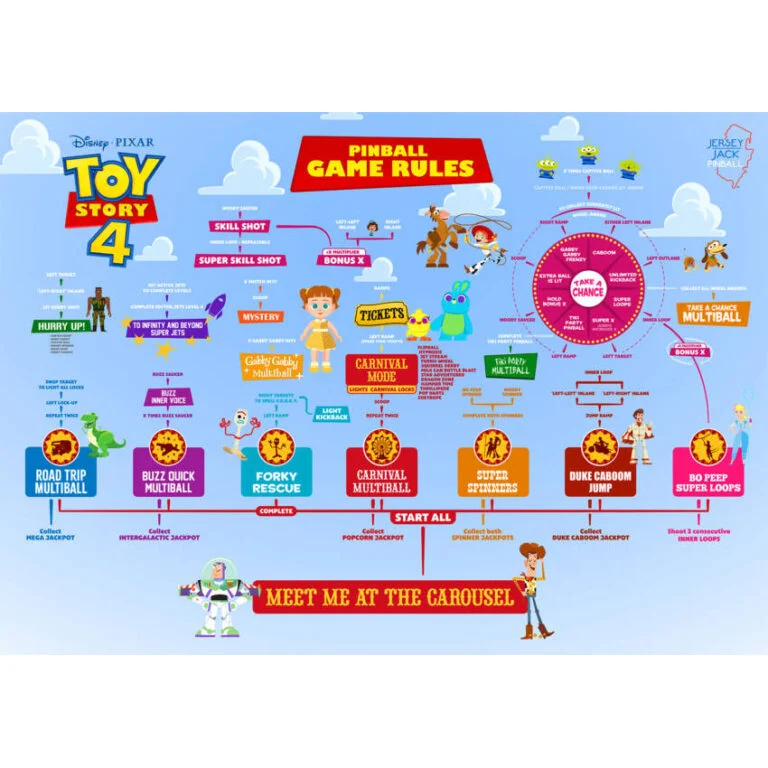 As long as the Bensons don’t obstruct your shot, players can launch the silver ball off the Duke Caboom jump ramp! In Buzz Multiball, aim for the stand-up targets to light Rescue Forky and blast into the jet bumpers to win a mega jackpot. Hurry up and bash Gabby Gabby into a pinball frenzy on the way to scoring Grand Champion. Try your luck at the spinning wheel to win various prizes like Super Loops, Tiki Party, Extra Ball, and more! On the 10-inch playfield frame display, launch interactive carnival games like Flipball, Dragon Zone, Squirrel Derby, and Star Adventurer.